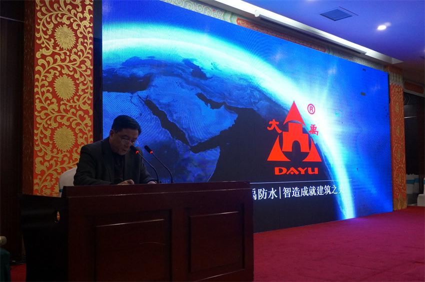 議題之二是中國(guó)十大防水品牌企業(yè)遼寧大禹集團(tuán),為本次盛會(huì)帶來(lái)了防水新技術(shù)。圖為遼寧大禹集團(tuán)銷售副總經(jīng)理王健到會(huì)祝賀。